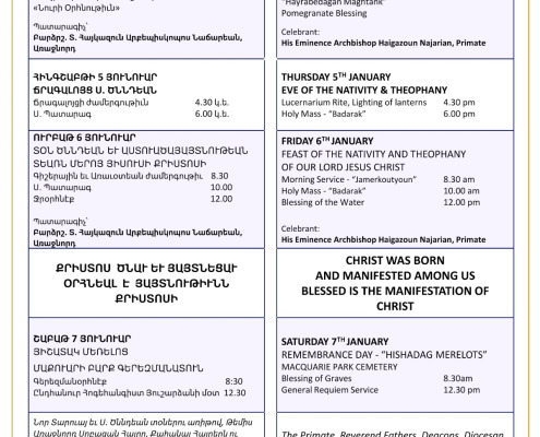 It is an Armenian tradition to commence the new year in prayer, giving glory to God for the past year, and seeking good fortune for the year ahead.