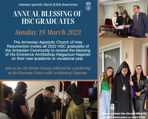 The annual blessing of the HSC graduates and presentation of scholarships will take place on Sunday 19 March 2023