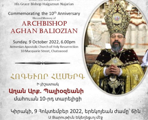 Our church faithful are invited to attend a concert commemorating the 10 year anniversary of the blessed memory of Archbishop Aghan Baliozian