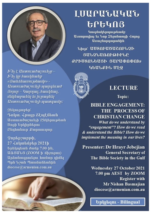Join us for this informative lecture presented by Dr Hrayr Jebejian, General Secretary of The Bible Society in the Gulf