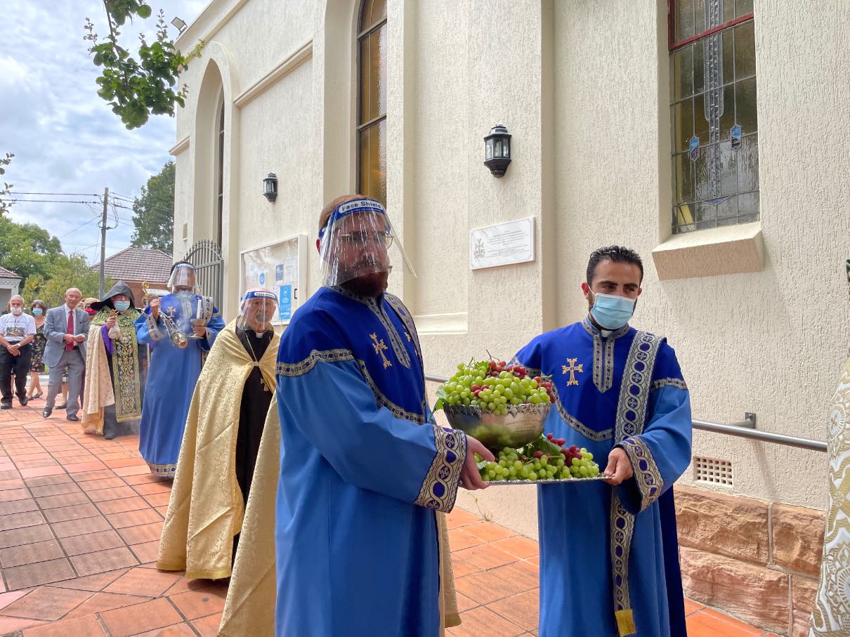 Following the Divine Liturgy, in the courtyard of the Church of Holy Resurrection, Archbishop Najarian accompanied by Archpriest Reverend Father Norayr Patanian, Archpriest Reverend Father Bartev Karakashian and Reverend Father Avetis Hambardzumyan conducted the traditional grape blessing ceremony and blessed all those who had pledged vows and the faithful who donated the grapes.